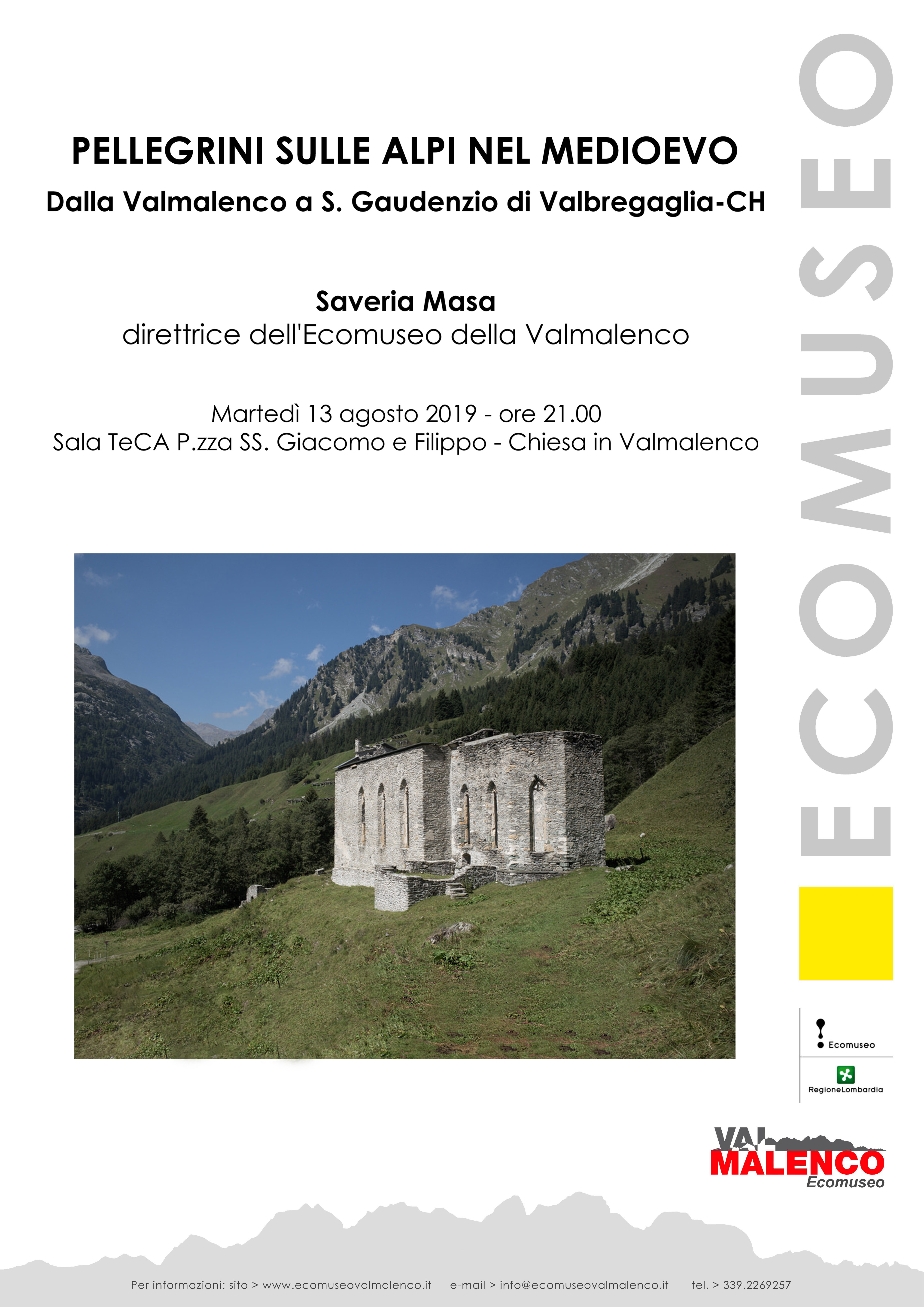 L'incontro sarà tenuto da Saveria Masa, storica e direttrice dell'Ecomuseo della Valmalenco e affronterà per la prima volta il tema dei pellegrinaggi che durante il Medioevo gli abitanti della Valmalenco effettuavano ogni anno presso l'antico santuario di San Gaudenzio di Casaccia in Valbregaglia (CH), intraprendendo il lungo viaggio attraverso la strada cavallera del Muretto, secondo quanto tramandato dalle memorie di un antico registro conservato presso l'archivio parrocchiale di Lanzada.