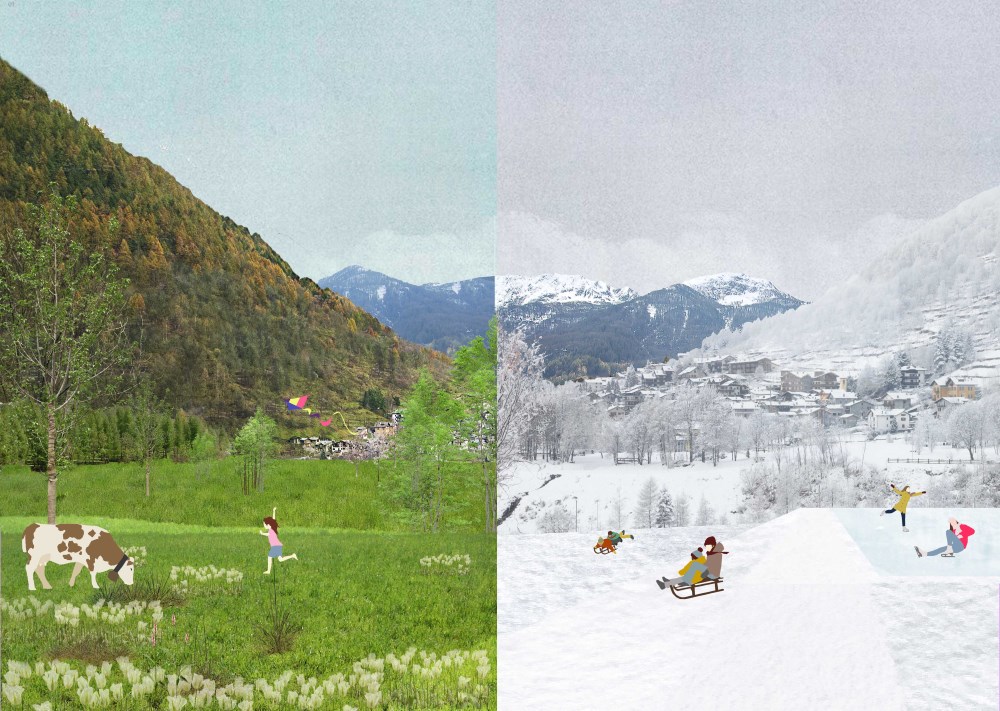 Ne emerge la potenzialità di essere spazio mutevole e catalizzatore delle attività che si susseguono nel fondo valle, caratterizzando la vita sociale dei tre comuni montani nel corso delle stagioni.