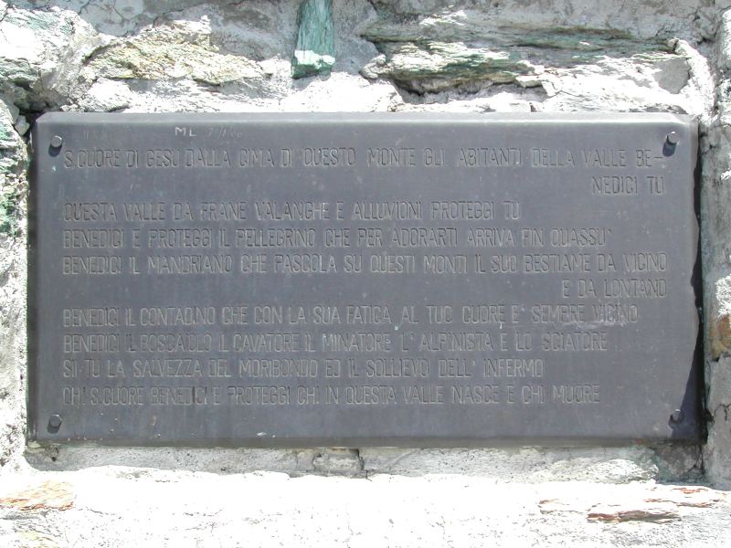 O Sacro Cuore, benedici e proteggi chi in questa valle nasce e chi muore.