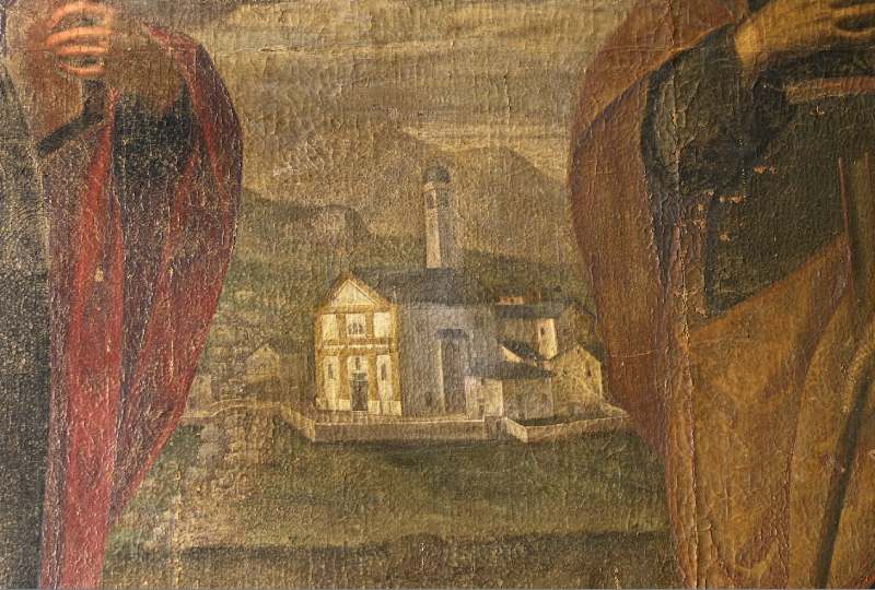 L'antica chiesa dei SS. Giacomo e Filippo, particolare del dipinto La Madonna e i santi Giacomo e Filippo di Domenico Stella (1665).