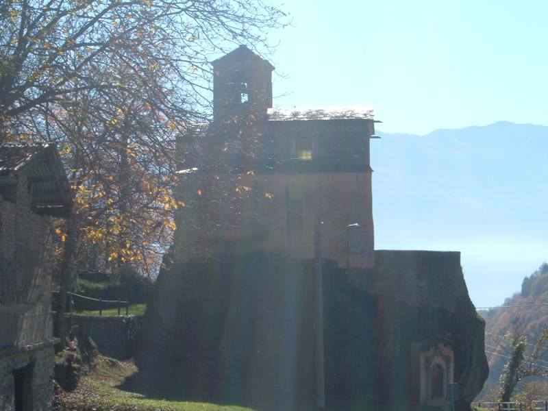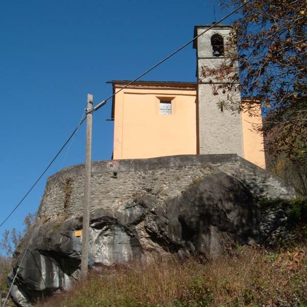 La tradizione vuole che essa sia più antica della chiesa parrocchiale e che sia stata edificata per “ex voto” e come protezione dai sassi cadenti dalla ripida sponda sovrastante.
