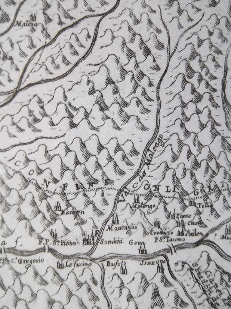 Il vero disegno della Valtellina e Val Chiavenna con suoi confini, 1620 ca. Particolare della Val Malenco.