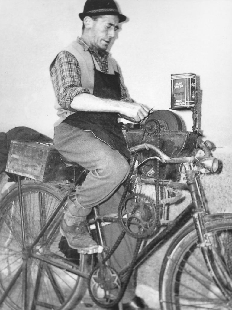 Verso gli anni Cinquanta la mola venne gradualmente sostituita dalla bicicletta: la ruota abrasiva e il secchiello vennero installati sul manubrio e una serie di catene collegate ai pedali le imprimevano il movimento.
