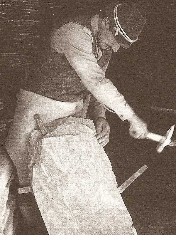 Operaio all'opera nella scissione del serpentino.