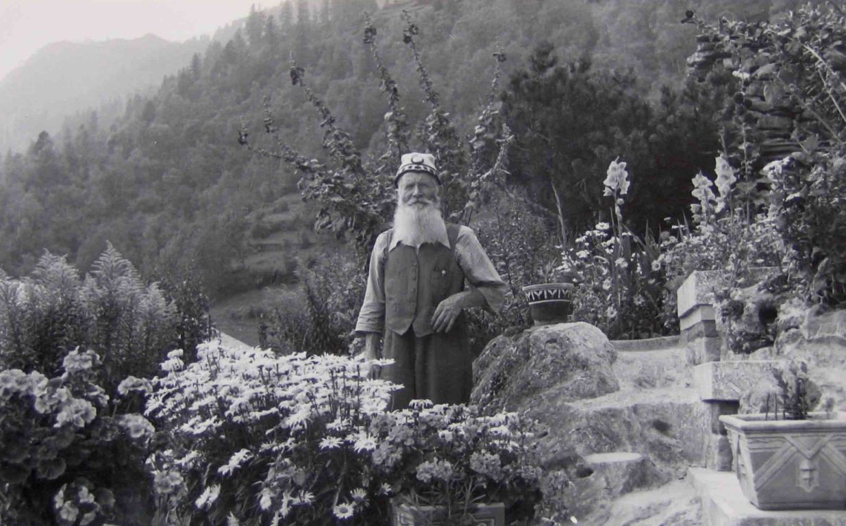 Erminio Dioli nel giardino, 1954.