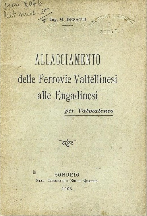 stampato con i tipi del Quadrio nel 1903, Allacciamento delle Ferrovie Valtellinesi alle Engadinesi per Valmalenco rappresenta