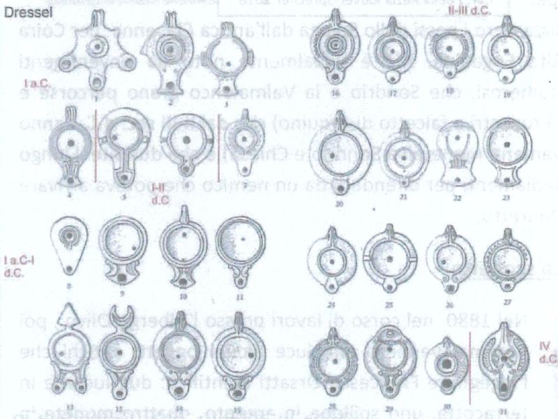 Le lucerne "classiche" erano per la maggior parte in terracotta costituite da una ciotolina - serbatoio, un beccuccio per la fuoriuscita dello stoppino, un'ansa per la presa e, nel caso di forme chiuse, un foro per l'alimentazione.