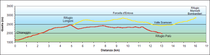 Rif. Longoni 2450m - Forcella d'Entova 2830m - Rif. Marinelli 2813m