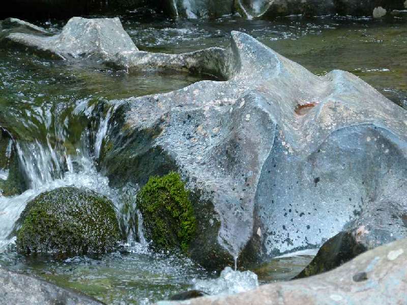 In più punti è possibile deviare direttamente nell'alveo per osservare le diverse forme rocciose arrotondate e levigate dai millenari di modellazione geologica.