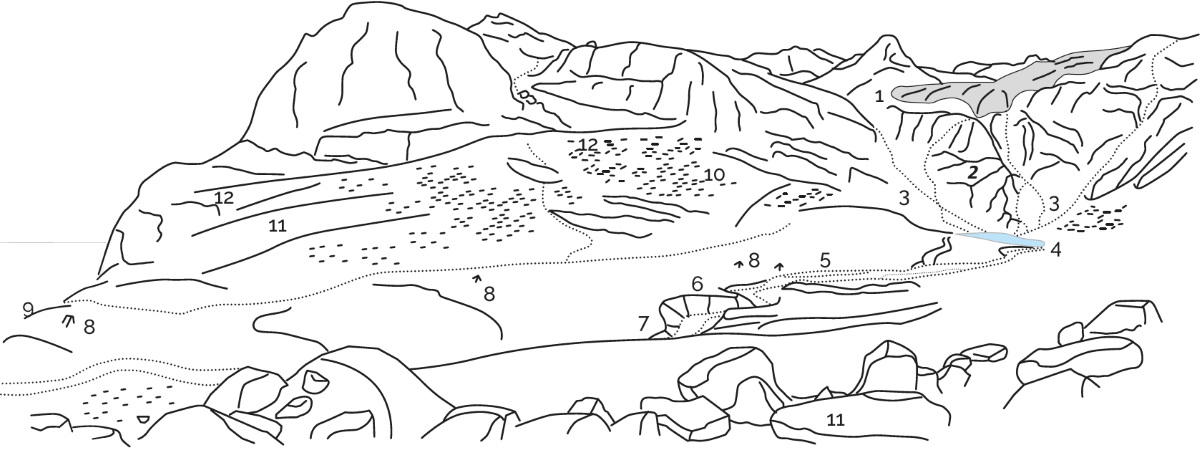Il ritiro della lingua glaciale ha liberatoil fondovalle dal ghiaccio lasciando numerosi elementi.